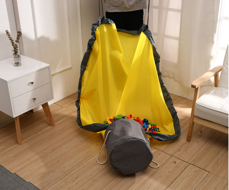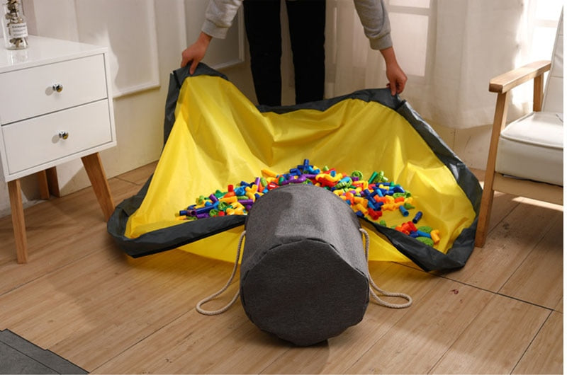 AUFRÄUMEN IN SEKUNDEN - Toybag™ stoppt die Verbreitung von Kinderspielzeug-Chaos. Spielmatte ausbreiten, Korb auskippen - fertig! Keine herumfliegenden Teile mehr. Nach dem Spielen gleitet das Spielzeug in wenigen Sekunden durch ein schnelles Ziehen an den Griffen wieder zur Aufbewahrung in den Korb.